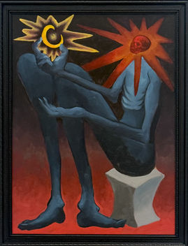 FOLKTALE has work that include traditional pen and India ink drawings, oil paintings on canvas, and a small collection of ceramic objects. These works range in size from small two inch sculptures to large scale four foot drawings.